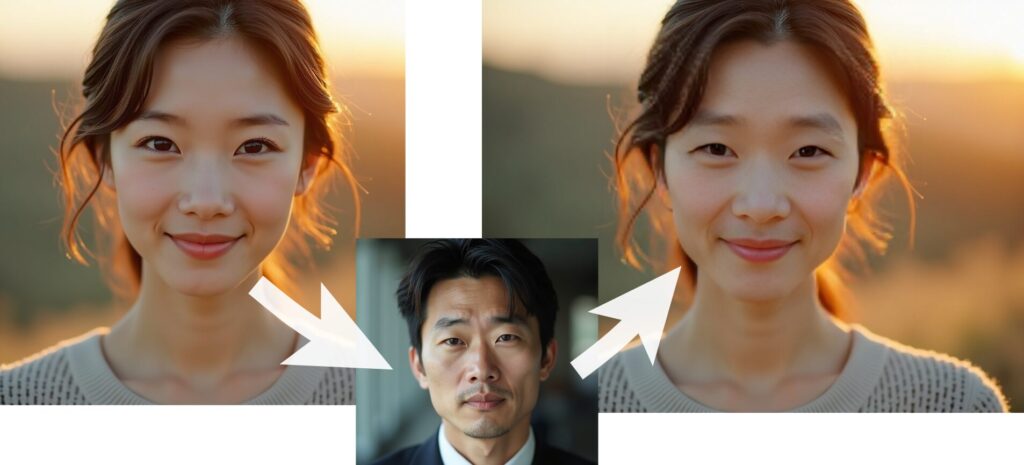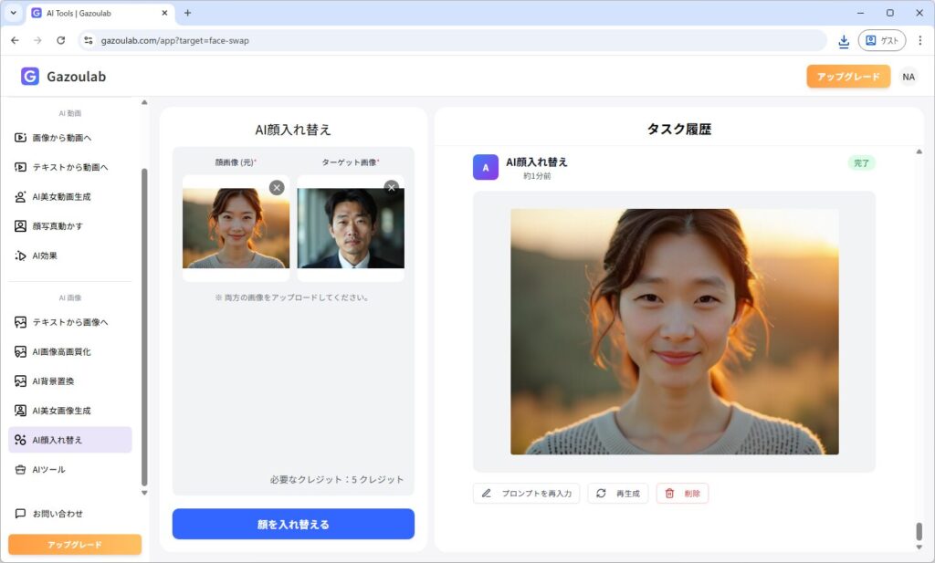 GazoulabのAIで生成した男性と女性の顔を交換させてみようとしました。
