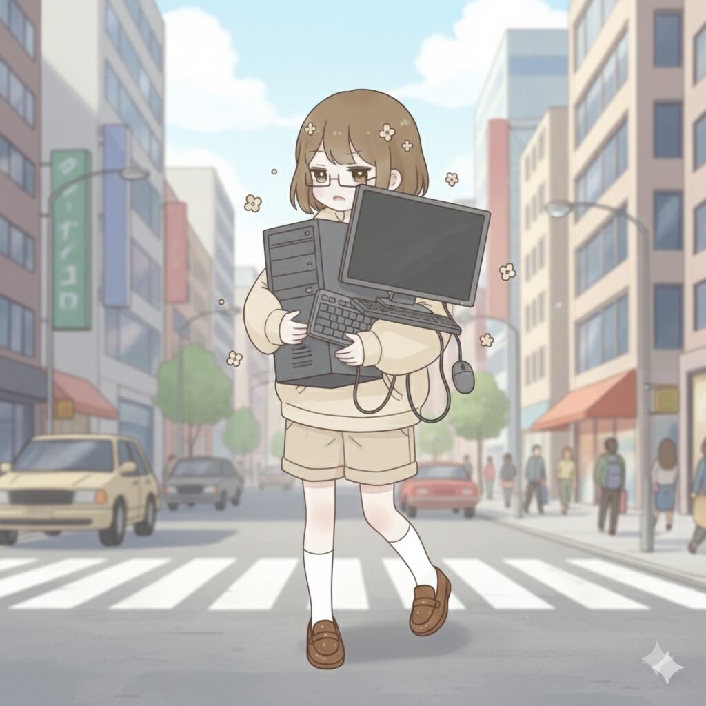 左の画像のように、大きなパソコンを持ち歩くのは大変ですよね。