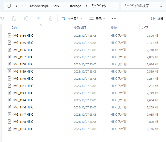 では、早速WindowsからRaspberry PiのNASにつなげてみます。WindowsのエクスプローラーのアドレスバーにRaspberry PiのIPアドレスを入力します。
