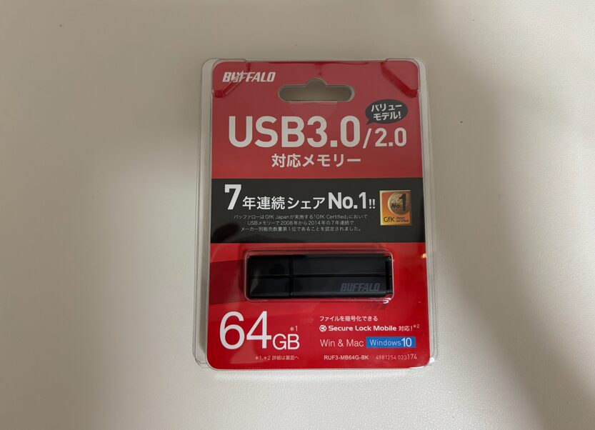 今回は、Raspberry PiをNASにするにあたって手軽に済ましたかったのでUSBメモリをストレージ代わりにしたいと思います。(実際に運用する場合は、HDDがいいです。)