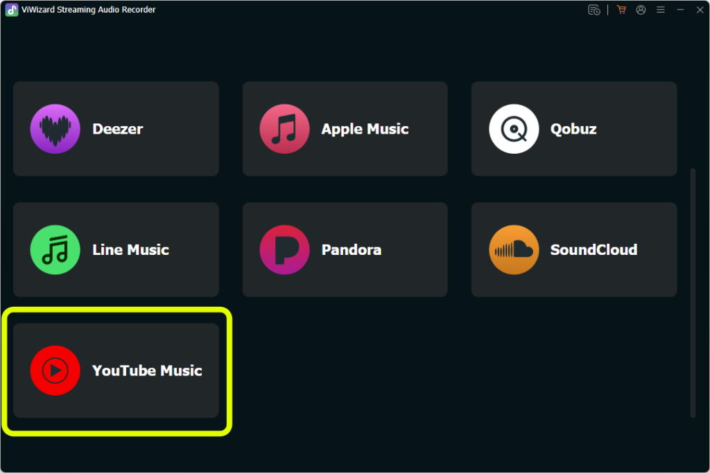 今回は、YouTube Musicで変換を試してみようと思います。トップ画面から「YouTube Music」を選択します。